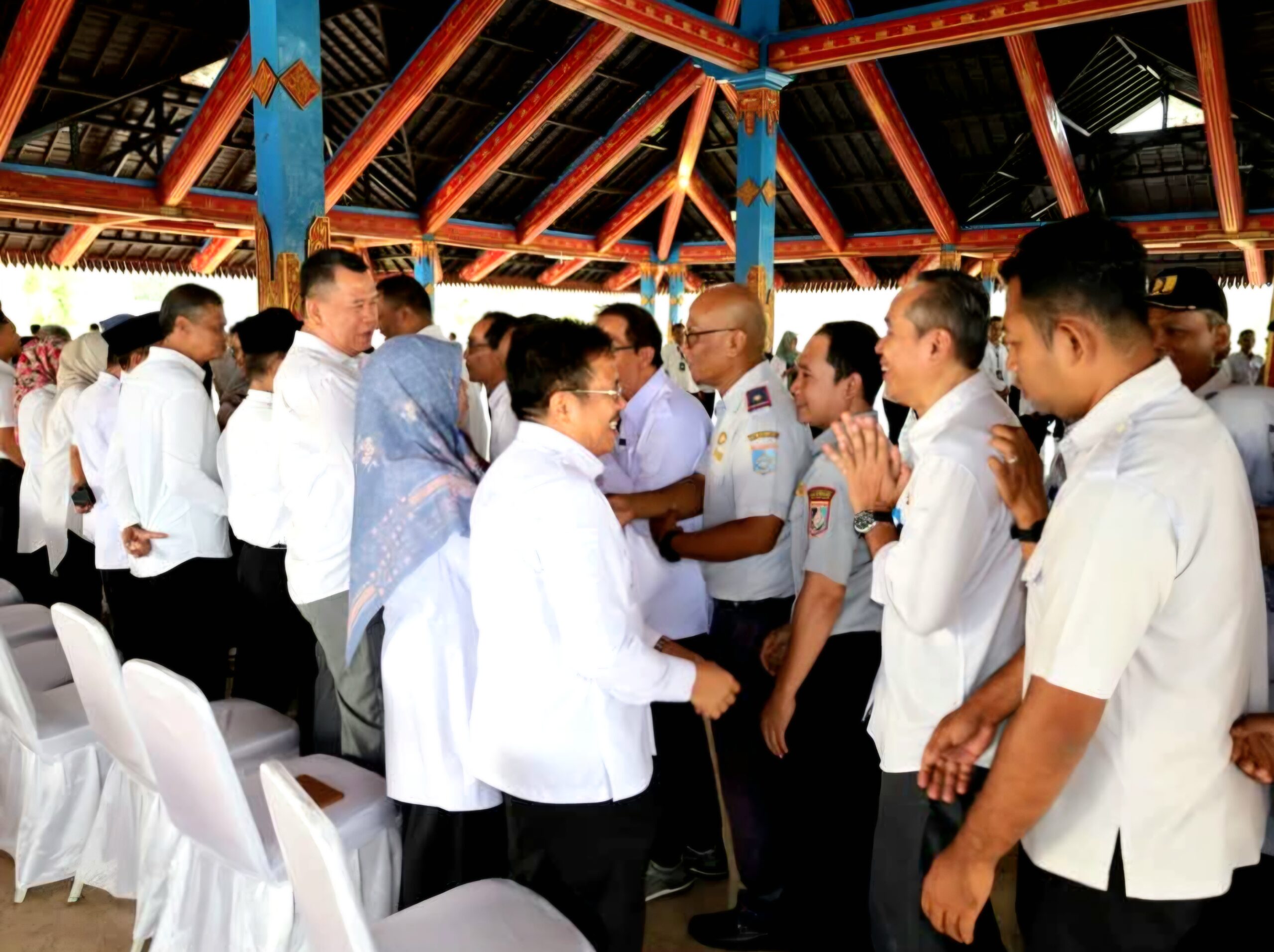 Kehadiran jajaran pimpinan daerah di atas panggung Bencingah, mengirimkan pesan kuat tentang soliditas pemerintah daerah. Wabup Hj. Nurul Adha dan Pj. Sekda H. Akhmad Saikhu tampak mendampingi Bupati saat menyapa satu per satu pegawai yang hadir.